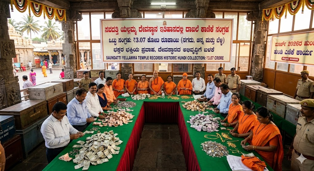 ಉತ್ತರ ಕರ್ನಾಟಕದ ಶಕ್ತಿಪೀಠ, ಲಕ್ಷಾಂತರ ಭಕ್ತರ ಆರಾಧ್ಯ ದೈವ ಸವದತ್ತಿ ರೇಣುಕಾ ಯಲ್ಲಮ್ಮ ದೇವಸ್ಥಾನದಲ್ಲಿ ಈ ಬಾರಿ ಭಕ್ತಿಯ ಮಹಾಪೂರವೇ ಹರಿದುಬಂದಿದೆ. ಮಾರ್ಚ್ ತಿಂಗಳ ಆರಂಭದಲ್ಲಿ ನಡೆದ ಹುಂಡಿ ಎಣಿಕೆ ಕಾರ್ಯವು ಎಲ್ಲರನ್ನೂ ಅಚ್ಚರಿಗೊಳಿಸುವಂತಹ ಫಲಿತಾಂಶ ನೀಡಿದೆ. ಕೇವಲ ನಾಲ್ಕು ದಿನಗಳ ಎಣಿಕೆಯಲ್ಲಿ ಬರೋಬ್ಬರಿ 3.07 ಕೋಟಿ ರೂಪಾಯಿ ಮೌಲ್ಯದ ಕಾಣಿಕೆ ಸಂಗ್ರಹವಾಗುವ ಮೂಲಕ ದೇವಸ್ಥಾನದ ಇತಿಹಾಸದಲ್ಲೇ ಒಂದು ಹೊಸ ದಾಖಲೆ ನಿರ್ಮಾಣವಾಗಿದೆ.